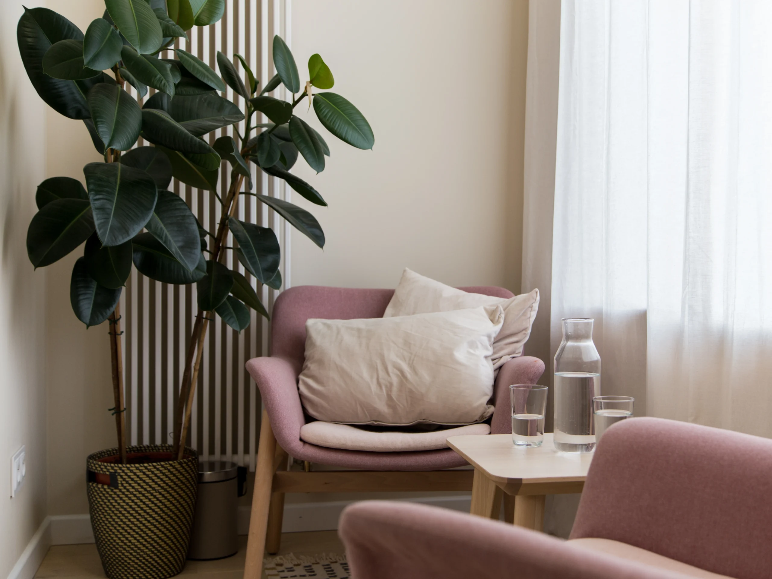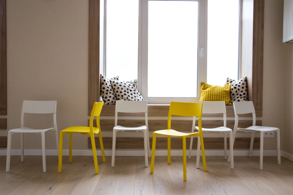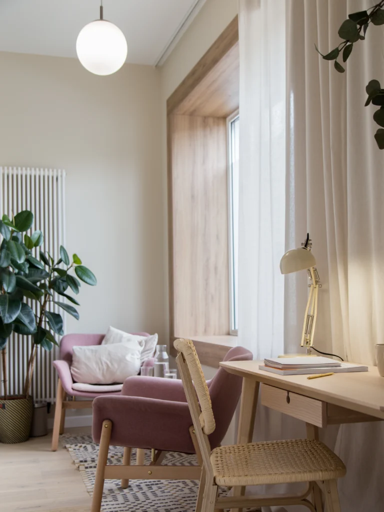 Wybór tkanin i materiałów odgrywa kluczową rolę w stworzeniu bezpiecznej przestrzeni. W Feminotece zastosowano naturalne materiały, takie jak drewno czy len, które wprowadzają ciepło i przytulność. Meble o prostych, ergonomicznych formach zapewniają komfort zarówno klientkom, jak i terapeutkom. Dodatki w postaci miękkich poduszek, pledów czy dywanów tłumią dźwięki, co sprzyja poczuciu bezpieczeństwa i prywatności.